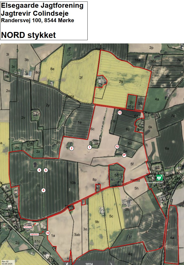 Her er et kort over vores jagt revir ved Colindseje i Bendstrup nær Termestrup på Djursland, kaldet Nordstykket.